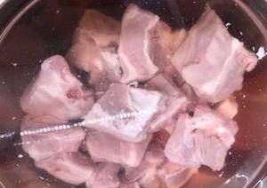 1、肋排,剁小一点的块,泡水一小时去血水。