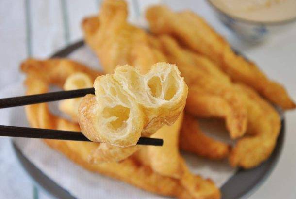 2、油条胚不能太细太薄,不然油条即使充分膨胀了也无法形成大大的孔洞。