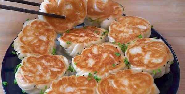 再把每一个一分为二摞起来,在中间压一下,然后挑起面积,稍稍拉升,轻轻一转一个花卷就做好了,做好的花卷直接放到平底锅,开始发酵,我放到烤箱35度半个小时就发好了,像这样看着体积明显变大,在边上淋入食用油,小火先把底部煎到金黄。然后加入一小碗清水,没过花卷的1/3处。盖上盖子,煎到水分收干。每个都是小白胖子,出锅前撒上点小葱花和黑芝麻。底部酥脆,花卷渲染每一层都可以撕开,这样做简单省事儿比蒸出来的更好吃。