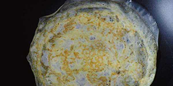 3、锅中刷一层油,倒入蛋液摊成蛋饼,定型后翻面,加热一下就可以取出。