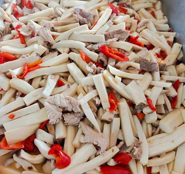 这个小炒肉里面的辣椒很入味,肉片也很新鲜,吃起来肉质口感好,细嫩而不腻,配米饭是一绝。不喜欢吃辣的可以试一试杏鲍菇炒肉片,加了一点红椒提味增色,但是味道鲜美,肉片细嫩杏鲍菇鲜美顺滑,也是很下饭。