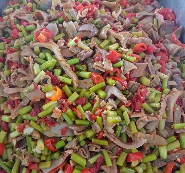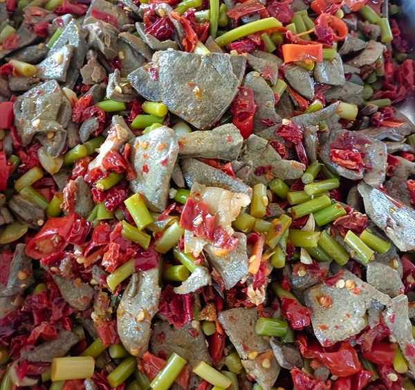 大块的粉蒸肉肥瘦相间一点也不腻,搭配软糯的土豆是最好。好吃的泡椒猪肝又脆又绵实,没有什么膻味,口感非常好。还有这个糯米笋炒腊肉,糯米笋脆脆的特别香,腊肉肥而不腻,咸香可口,猪油香味渗透到肉里,分不清谁更好吃。
