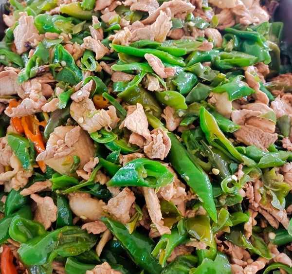 很少能在其他食堂看到炸小鱼,必须是很新鲜的小河鱼炸出来才香,这个鱼很细嫩没有腥味,鱼刺都已经炸得酥脆,可以直接一口吃下去,配了辣椒和蒜薹,又好看又提味,香香的酥酥的一口化渣,真是下饭神器。