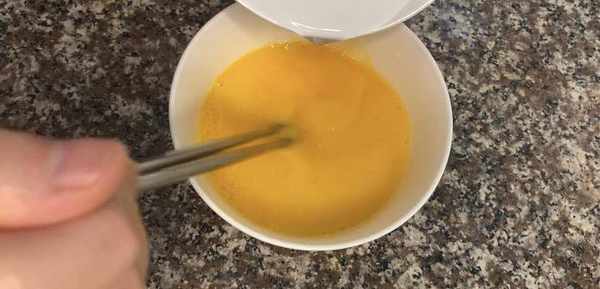 第二步:在鸡蛋上面加一点盐蛋白质更容易凝固,这样有利于成熟, 也增加了蛋白的咸味起到提鲜的作用,搅拌均匀,让蛋白和蛋黄,盐充分地融合
