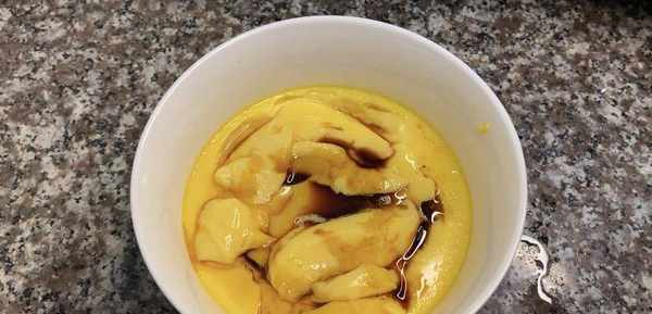 这一碗水蒸蛋就做好了,没有任何的气泡,鸡蛋不老,嫩滑到跟布丁一样,孩子吃完都还想吃,如果想做甜的炖蛋也跟这原理一样,先把糖放到水里融化先。