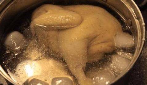 浸熟可以保证鸡肉不会过熟导致变老,还可以保证鸡汁不会因烹煮而流失,后面当用冰水浸洗,可以保证肉质的爽滑,所以大家记住了吗,白切鸡不是煮熟的,也是不是蒸熟的,而是浸熟的!