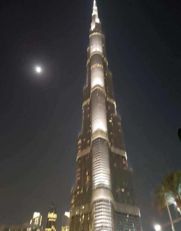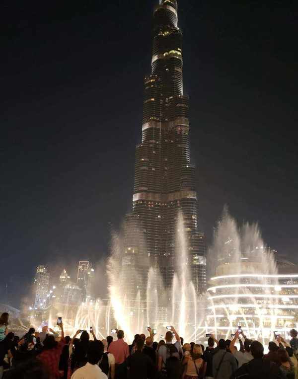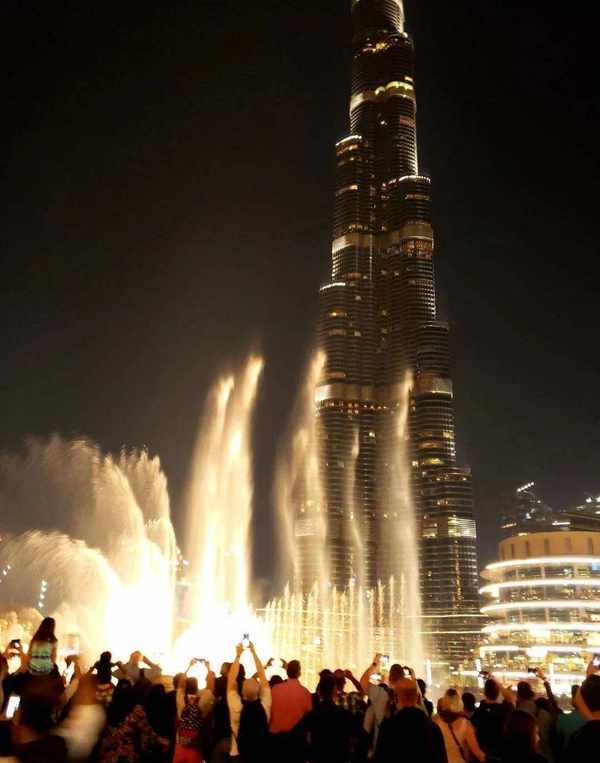 临近圣诞节。当晚广场上烟花漫天,璀璨夺目;音乐喷泉,随风而舞;周边高楼,灯火通明。哈利法塔巍然屹立,上下变幻着靓丽的灯彩。这一切让人置身于神话之中,忘记了自己真实的存在,飘飘欲仙。