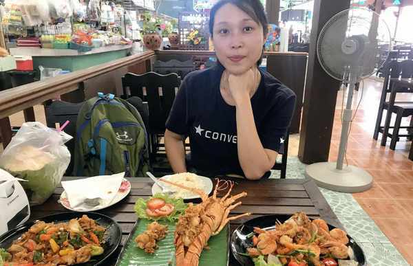 在国内东北吃两只大龙虾需要1500-1800元,在泰国普吉岛只需要280元左右。