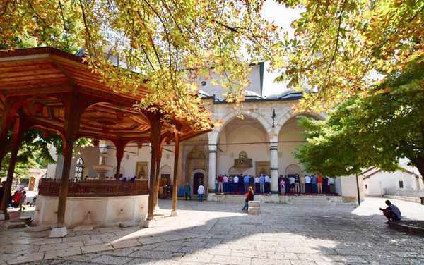 加兹赫斯别夫清真寺是波斯尼亚和黑塞哥维那最大的历史清真寺。它建于16世纪。它有一个充满秘密的巨大花园和美丽的内部。该清真寺可能是巴尔干地区最具代表性的奥斯曼帝国建筑之一。在博物馆有一个可供观看的视频,其中讲述了Gazi Husrev Beg的细节以及这座清真寺的建筑细节。这是一个单尖塔清真寺类型的绝佳例子。
