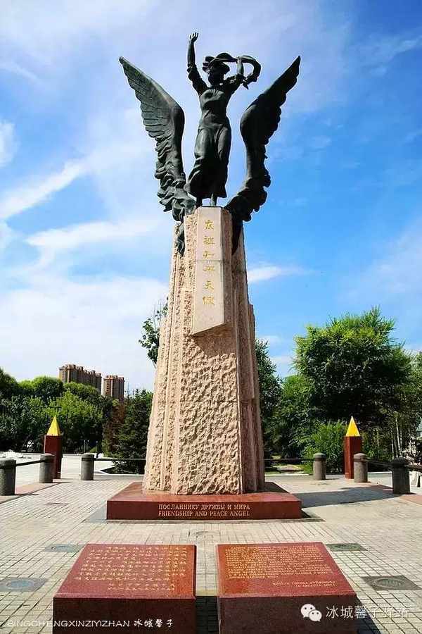 普京为“友谊平和天使”雕塑题词:“我们的友谊就是相互理解、信任、共同的价值观和利益。我们将铭记过去,展望未来”。