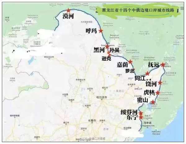 东宁—绥芬河—密山—虎林—饶河—抚远—同江—萝北—嘉荫—逊克—孙吴—黑河—呼玛—漠河