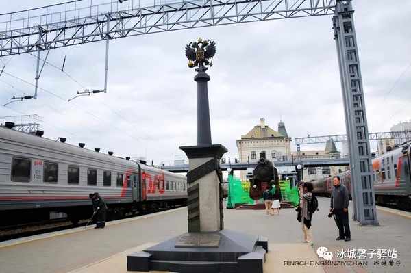 站台上这个俄罗斯双头鹰国徽的铁路纪念碑意义不凡,这是被称为世界十二大奇迹之一的西伯利亚大铁路的终点标志。