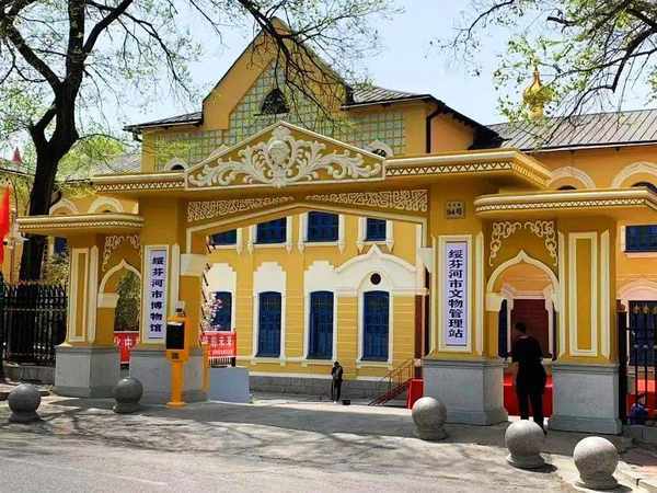 坐落在光华路与迎新街西南侧的绥芬河市博物馆,黄色的墙体、厚重的门窗、几何形浮雕,彰显着俄式建筑特有的风姿。这里是原苏俄学校旧址,如今,这座历经百年沧桑的老房子开始承载新的使命,以馆内收藏和展示的3000余件文物,将百年口岸博大和深厚的历史文化展示给后人。