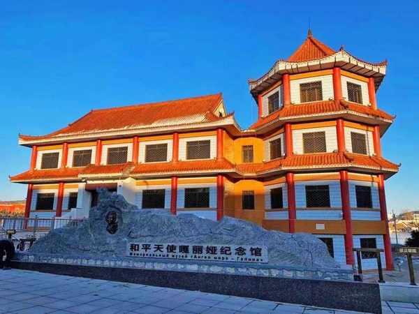 和平天使嘎丽娅纪念馆坐落在在风光秀丽的北海公园日月湖畔,向人们讲述着17岁的中俄混血美少女嘎丽娅作为特别军使翻译,带领苏联红军登上天长山要塞劝降日军并英勇牺牲的一幕,这是中俄友谊在百年口岸薪火相传的最好例证。