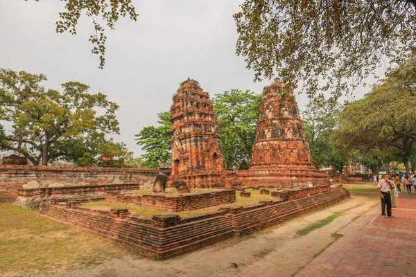 寺内有多座高大的佛塔,其中最著名的是中央大塔,高达50米,是大城府最高的佛塔之一。