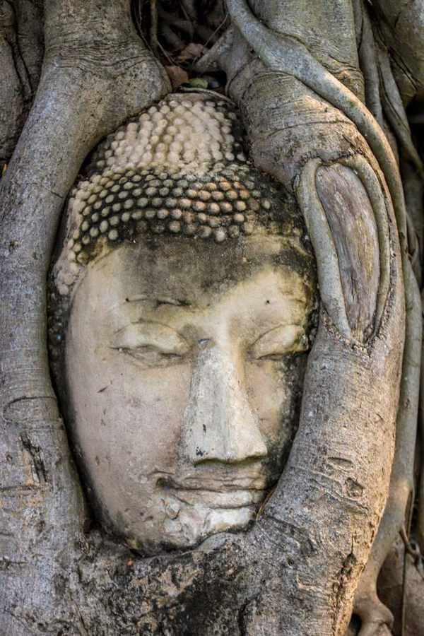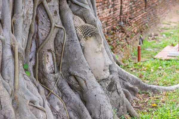 据传说,这尊佛像被遗弃在丛林中,后来一棵菩提树长出来,其树根渐渐包围了这尊佛像。