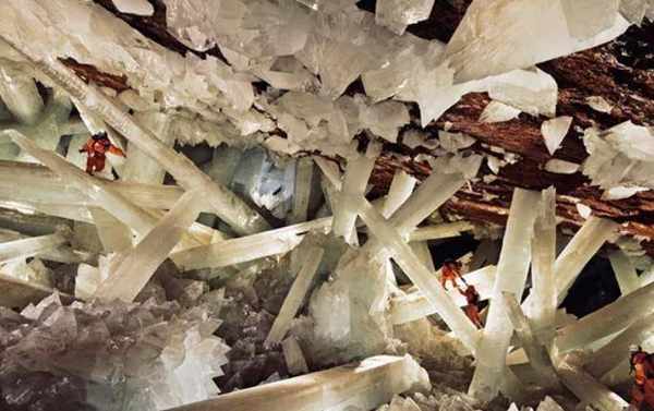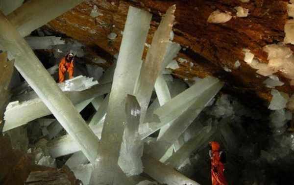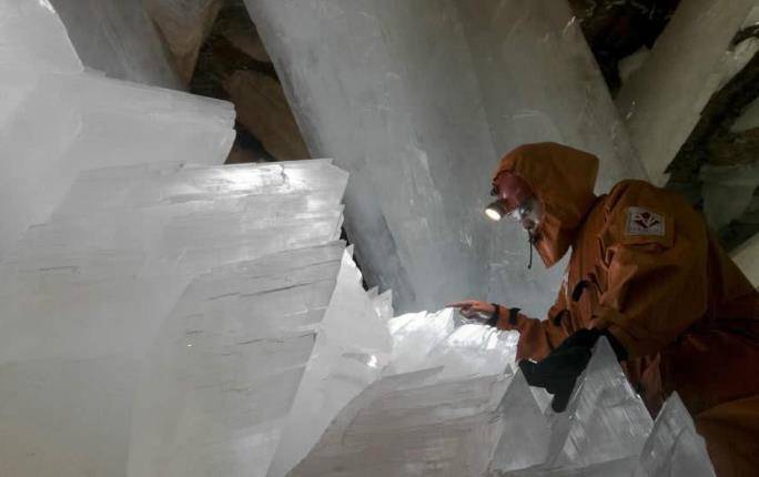 这座“冰宫”的颜色多成白色或透明色,就像冰块一样,会给人一种非常凉爽的错觉,其实实际上,洞里的温度常年保持在50℃左右,如果不带防护装备,进去根本受不了,之所以会这么热,是因为很多年前火山爆发遗留下来了高温石膏,之后慢慢变成水晶,却一直散发着高温。