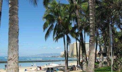 威基基海滩是夏威夷最出名的海滩,也是多数游人心目中最理想的夏威夷海滩。海滩东起钻石山下的卡皮欧尼拉公园(KapiolaniPark),西至阿拉威(AlaWai)游艇码头,长达一英里,每日到这里的游客不计其数。海滩区的精华部分是从丽晶饭店到亚斯顿威基基海滨饭店之间的一段,这里有细致洁白的沙滩、摇曳多姿的椰子树以及宁静开阔的水域,是一家老小假日休闲的理想地点。