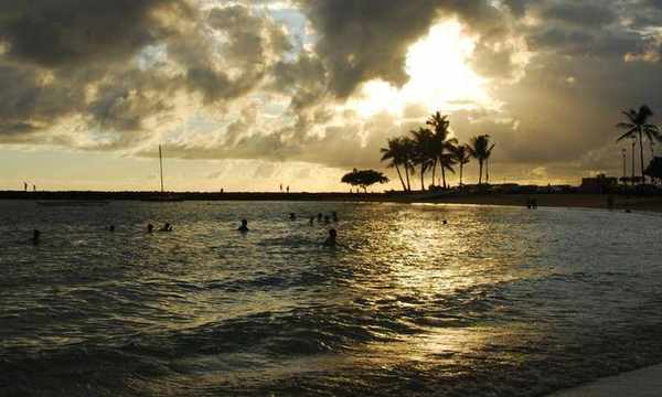 夏威夷威基基海滩是世界著名的度假圣地,宽阔的细沙海滩吸引了世界各地游客,来海边游泳、冲浪、划艇、晒太阳,日落的美景永远留在腦海中。