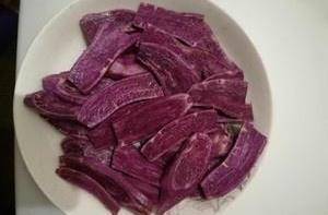 紫薯或芋头切片装盘盖保鲜膜蒸熟,加另一半糖捣碎。