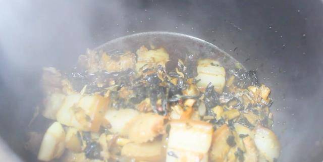 4、翻炒均匀之后加入一小碗水,水的量不用太多,然后稍微翻炒一下。将五花肉和白菜干一块放到高压锅中,盖上锅盖,大火焖20分钟。时间到了就可以出锅了,一道非常好吃的白菜干五花肉就这样做好了,吃起来肥而不腻。这道白菜干五花肉的做法是不是非常简单呀?你喜欢这道白菜干五花肉的做法吗?如果你也喜欢的话,那就抓紧时间准备食材,亲自动手做一下吧。