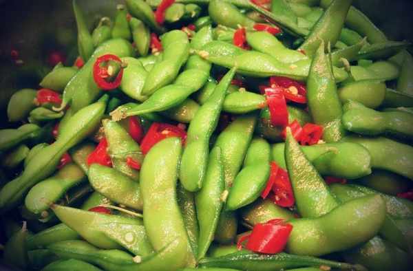 大家好,请问你爱吃毛豆呢?有的人估计吃过,却不知道那叫做毛豆,有的人知道毛豆,却一时想不起来长什么样。说到毛豆,估计最先想到的就是啤酒了。的确,凉拌毛豆作为一道下酒菜,那是相当合适的,经常出现在大排档了。自己做过凉拌毛豆的人都知道,虽然看起来就是拌一下那么简单,但要做得跟店里卖得一样,还是很有难度的。