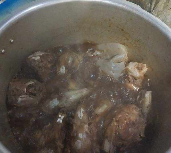 第6步、将清洗干净的兔头放入锅里,盖上锅盖,上汽后打7分钟,自然放气,之后再开盖煮一会儿,就好了。