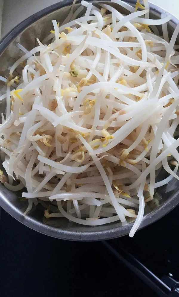 1 首先准备做凉面的配料:绿豆芽适量,水焯熟过凉水备用。