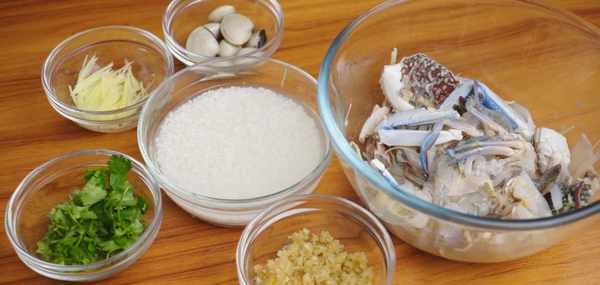 大米(最好是东北珍珠米),海鲜——我选用的是花蟹、鲍鱼、鱿鱼、大虾、白贝(选自己喜欢的就行)、冬菜(我认为冬菜是海鲜砂锅粥好吃不可缺的)、姜、香菜、葱