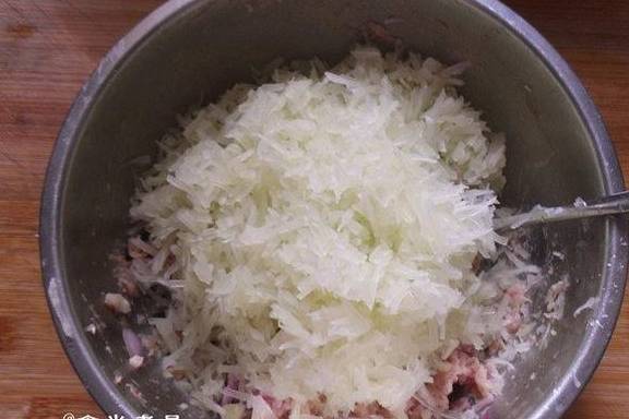 莴笋刨成丝,放入肉馅中,搅拌均匀