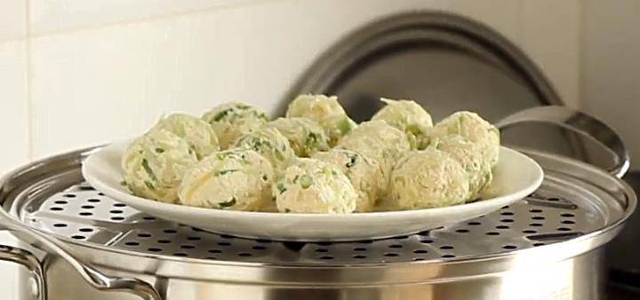 7、锅中放入清水,放上蒸屉,水开之后,放上丸子蒸15分钟。