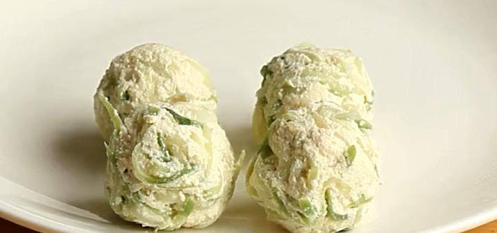 6、把拌好的萝卜豆腐用手捏成大小均匀的丸子。