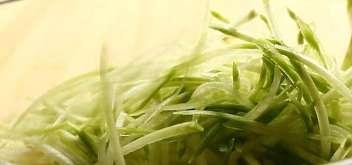 3、萝卜丝中加入适量的清水,清洗一下,挤干水分。