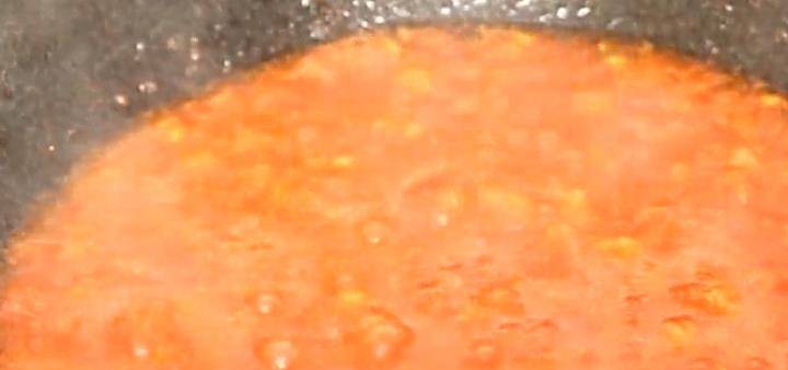 9、锅里放油,倒入西红柿、盐、酱油,煮开淋上水淀粉,炒成番茄酱,淋在丸子上即可。
