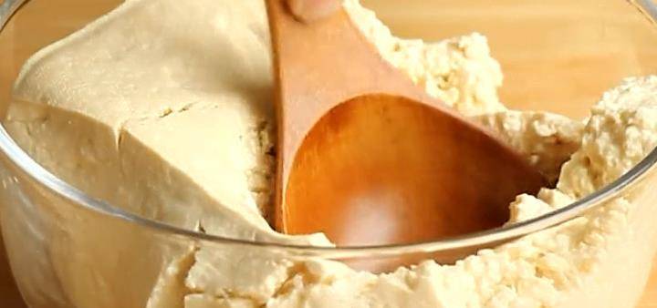 2、准备一块豆腐,放入碗中,然后用勺子将其碾碎。