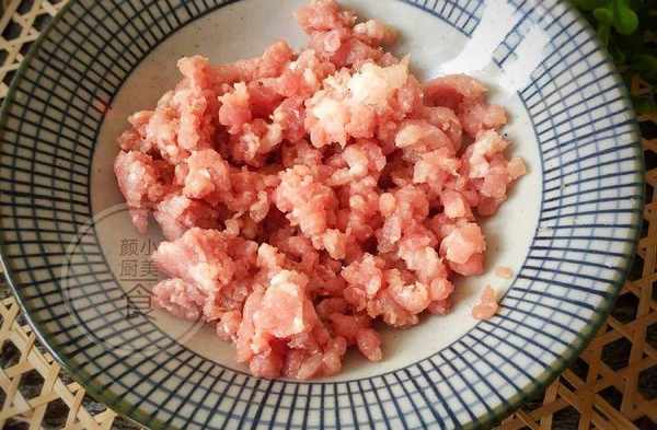 1、猪肉洗净用刀剁成肉末,或放料理机搅成肉末,剁好放大碗里。