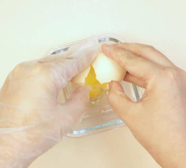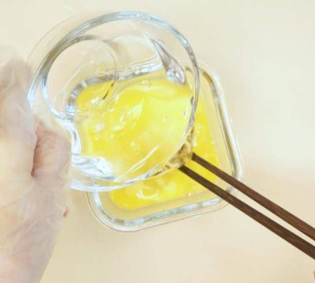 第3步、加入2倍量清水,一边添加一边搅拌鸡蛋。