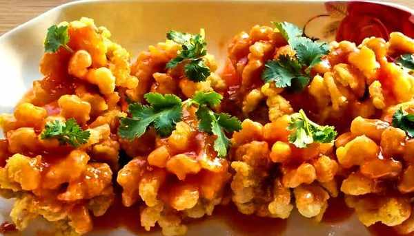 菊花鱼想要做的成功,在切鱼肉的时候就要注意,切鱼块的时候不能切断,这样鱼肉就不会成功,鱼肉上面要裹上一层淀粉,裹上淀粉之后经过油炸就会很酥脆,很多朋友裹成了面粉,鱼肉裹上面粉之后就非常的硬,经过油炸之后吃着口感也不好,只要注意裹得是淀粉,富贵菊花鱼就不会失败,加上番茄酱熬的料汁,酸酸甜甜的很好吃,老人和孩子都非常喜欢吃。鱼肉还能这样吃,不用蒸不用炖,切成鱼块下锅一炸,加上料汁就能吃,全家都喜欢。