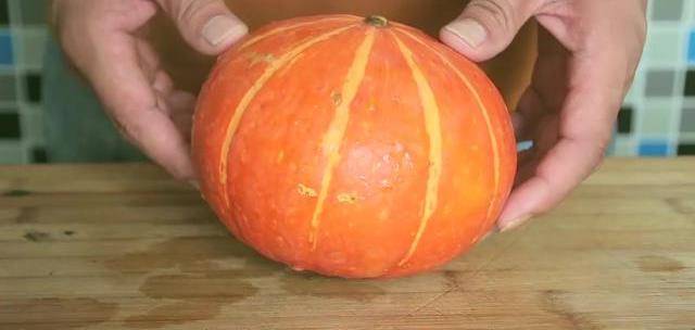 南瓜去皮,把它放到盘子里面,放到蒸锅上把它蒸熟。蒸8分钟就可以了。这个小金瓜已经完全蒸熟了,用勺子碾一下,完全可以碾碎,证明小金瓜就成熟了。