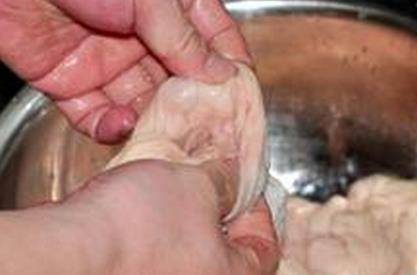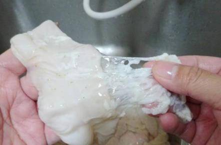 正反两面做法同样,多用水灌几下。(如果怕不干净可以在泡淘米水之前再用面粉和盐搓洗一遍)