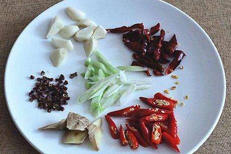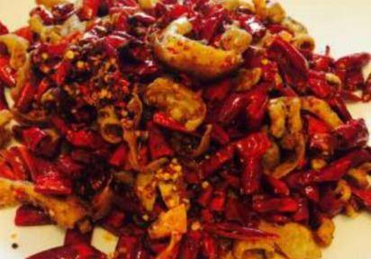 用料:猪大肠,辣椒,花椒,生姜,蒜,葱,盐,水,油,水淀粉
