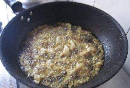 锅中留底油,下蒜末,花椒,辣椒爆香,倒入炸好的大肠,炒匀撒上葱出锅。