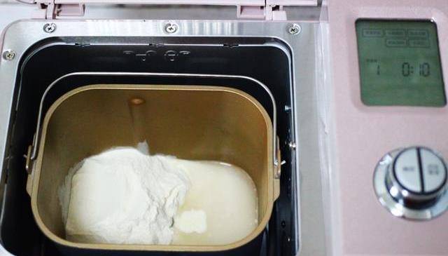 7、中筋面粉、甘汁园双碳白砂糖以及酵母和清水,混合和面。