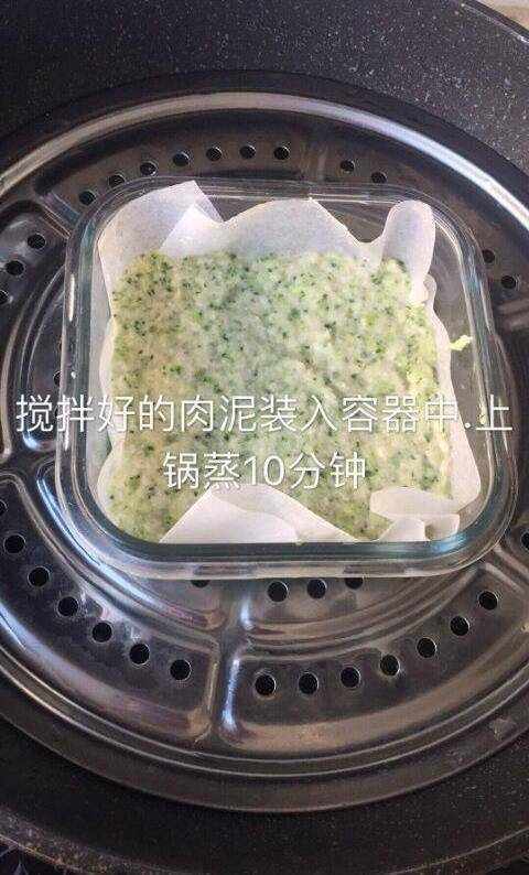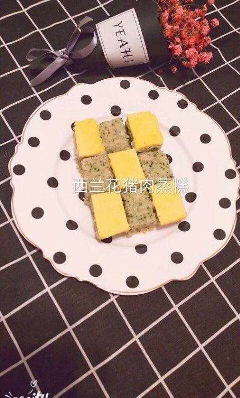 西兰花猪肉蒸糕完成,让我们的宝宝喜欢上你为他们做的美食哦,宝妈们快行动吧
