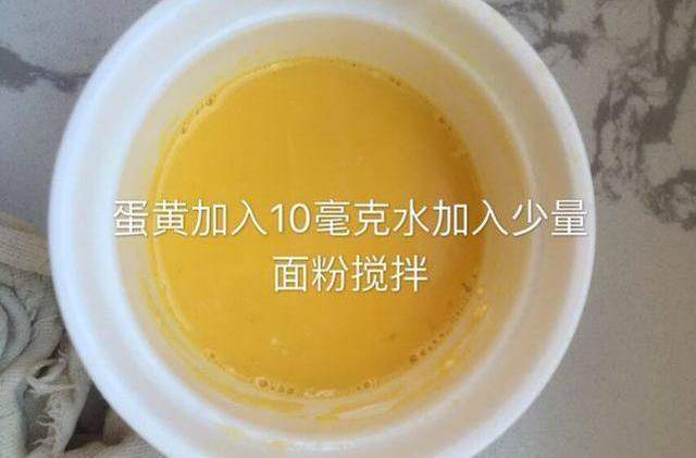 6.蛋黄加入10毫克水加入少量面粉搅拌均匀