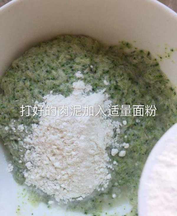 4.打好的肉泥加入适量的面粉搅拌