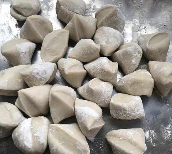 第1步、适量面粉加入开水用筷子搅拌成絮状,稍微凉一下和成软一点的面团醒三十分钟。