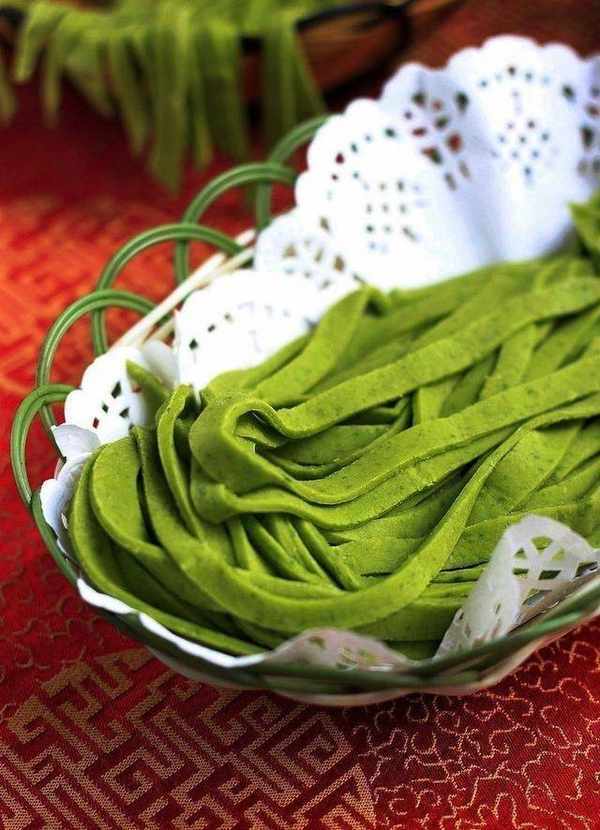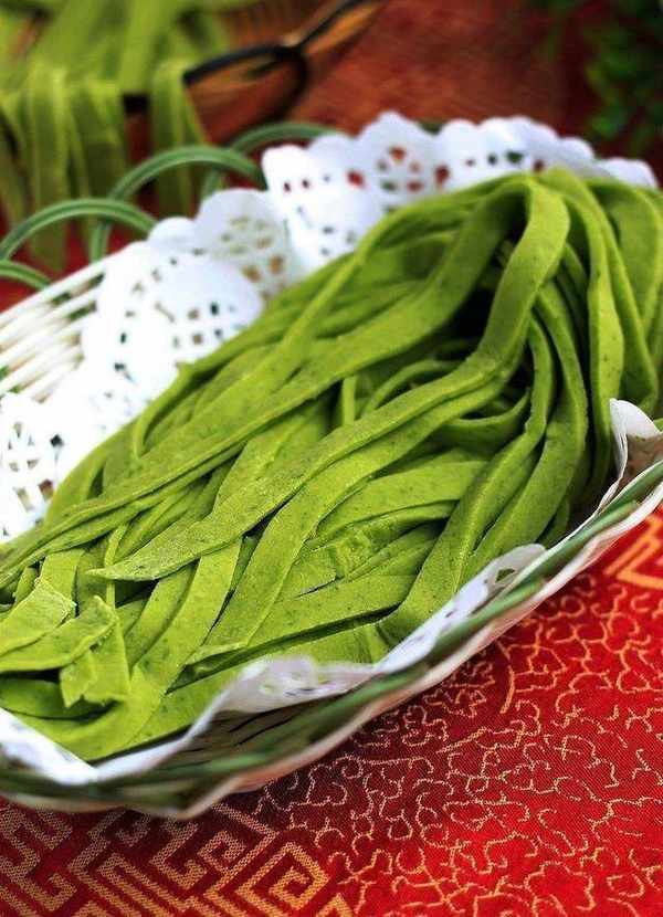 不是喜欢吃手擀面吗?我就用芹菜叶和面,做手擀芹菜叶面条,不仅把芹菜吃了,还可以吃到我的手擀面!!芹菜叶千万不要在扔了,做成绿色的面条,不仅可以做主食,还可以降血压的,剩物利用啊,一举两得啊!