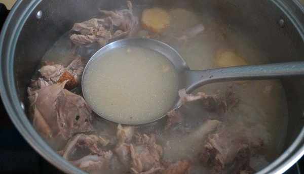 4.鸭架块入煮锅中,加热水,这是鸭汤浓白的窍门二;