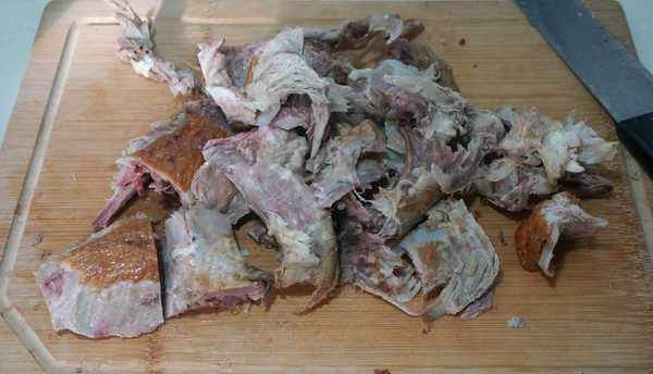 3.剩下的鸭架切成大块;